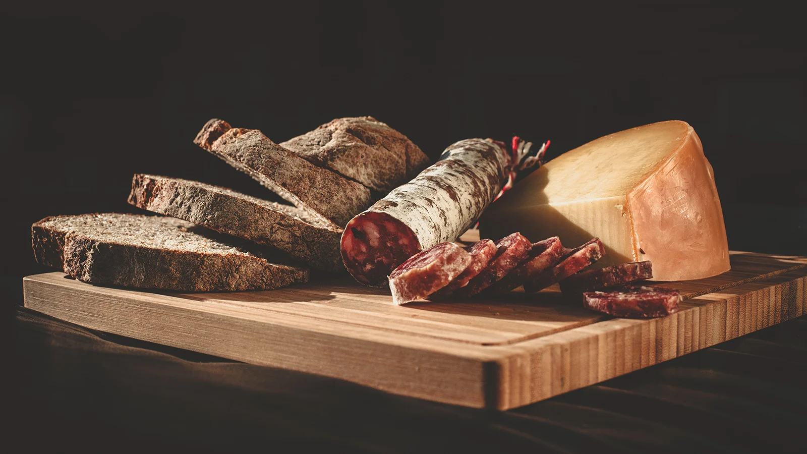 If you're wondering what you're looking at: there is some aged gouda and truffle infused salami from D-Original Sausage Co. (the best sausages you can find) and the best bread I've ever had from Romania Country Bread in Steveston.